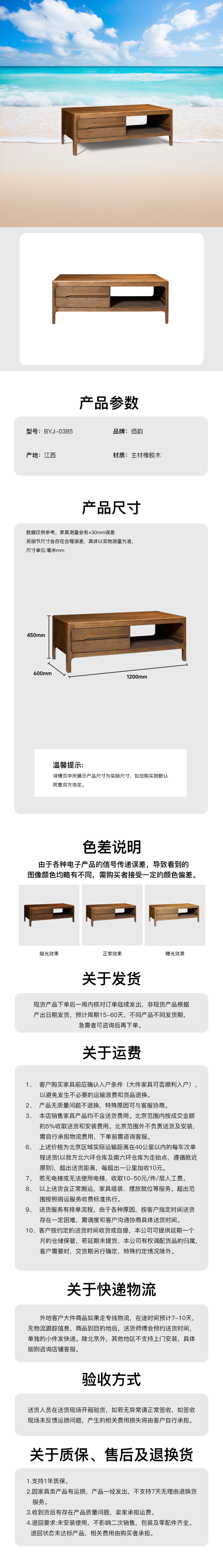 茶几(胡桃色)主材橡胶木 BYJ-0385