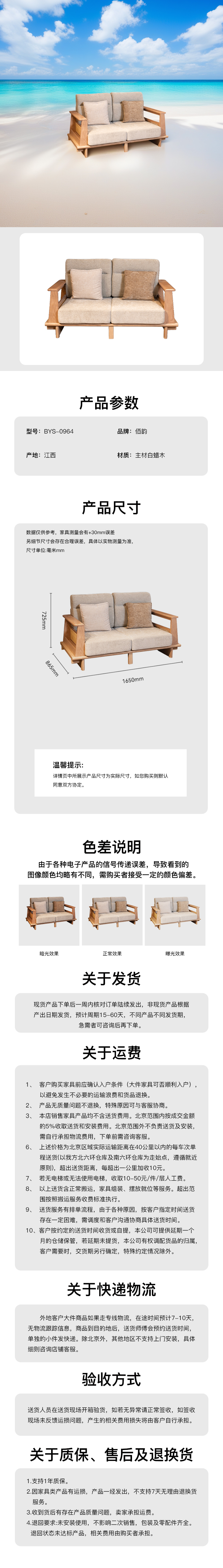 二人位沙发(暖杏色)主材白蜡木 BYS-0964
