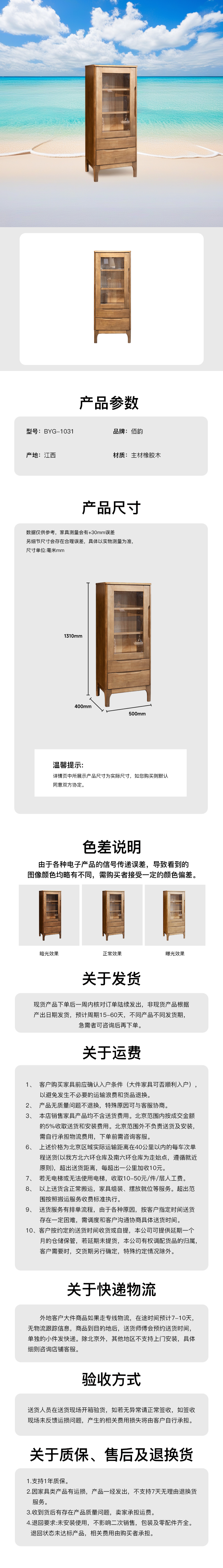 高边柜(胡桃色)主材橡胶木 BYG-1031