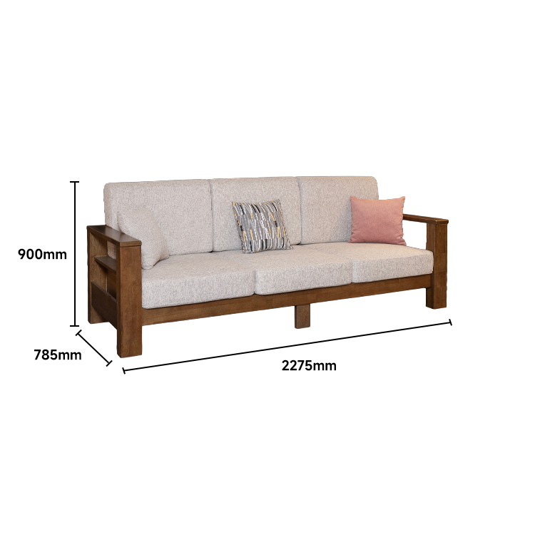 三人位沙发(胡桃色)主材橡胶木 BYS-0957