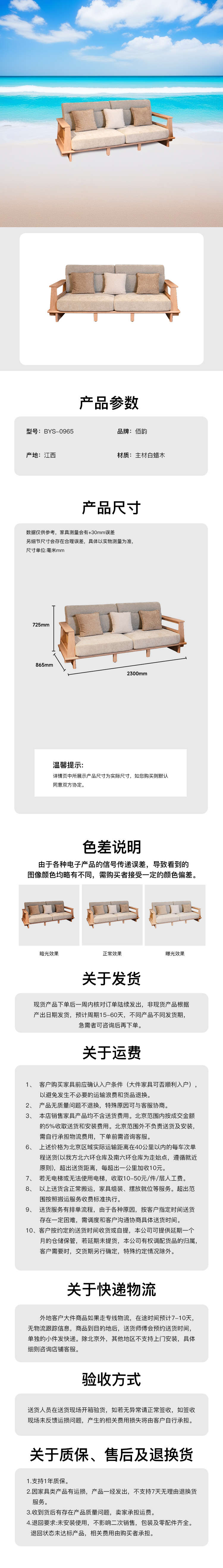 三人位沙发(暖杏色)主材白蜡木 BYS-0965