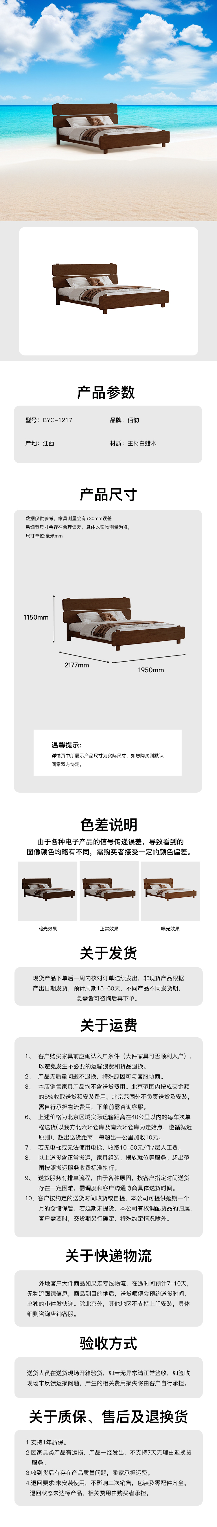 暖榫实木床(胡桃色)主材白蜡木 BYC-1217