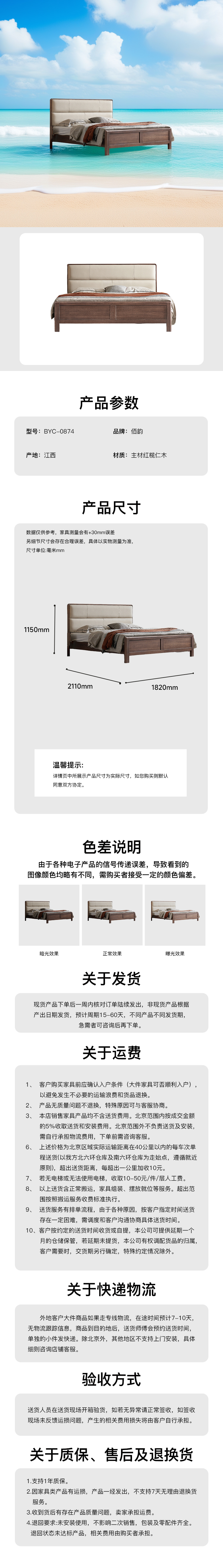 半暖实木软包床主材红榄仁木 BYC-0874