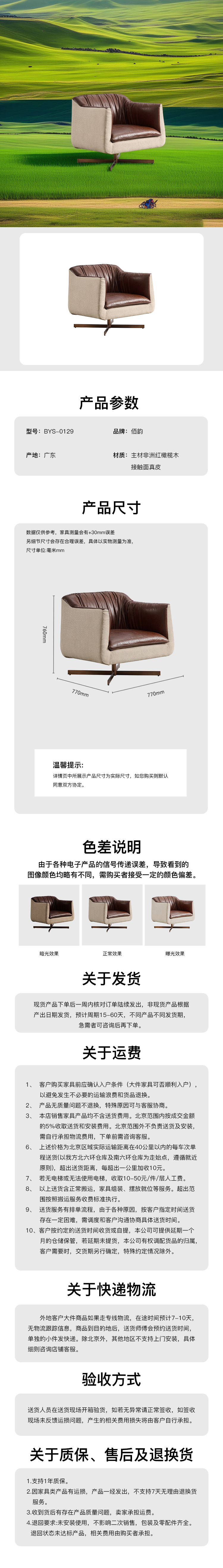 单人位沙发主材非洲红橄榄木、接触面真皮 BYS-0129