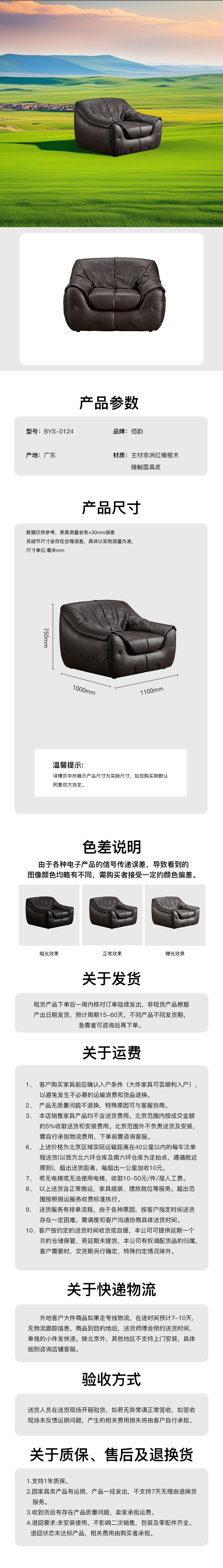 单人位沙发主材非洲红橄榄木、接触面真皮 BYS-0124