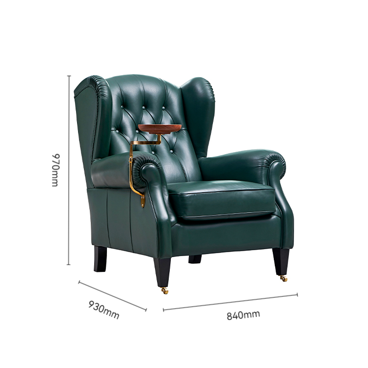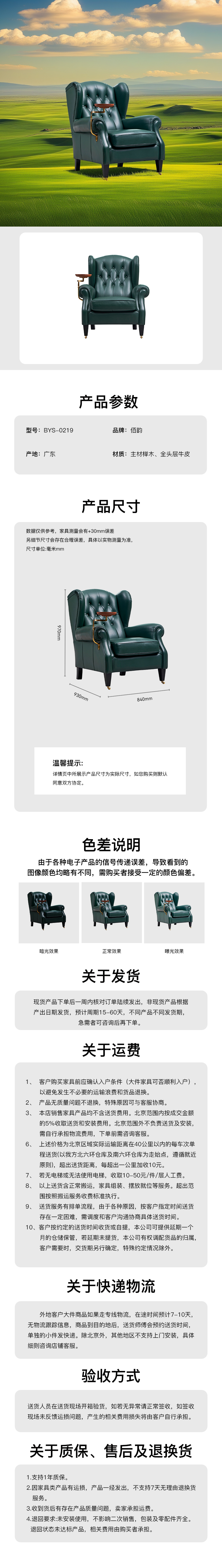 主材:RO-53墨绿色全真皮 内框架:进口榉木/实木夹板·E1标准/俄罗斯松木/喷棉/PP棉 坐垫:高密度海绵加鸭绒包/外架不锈钢真空镀/小铜烟灰杯/胡桃木杯托