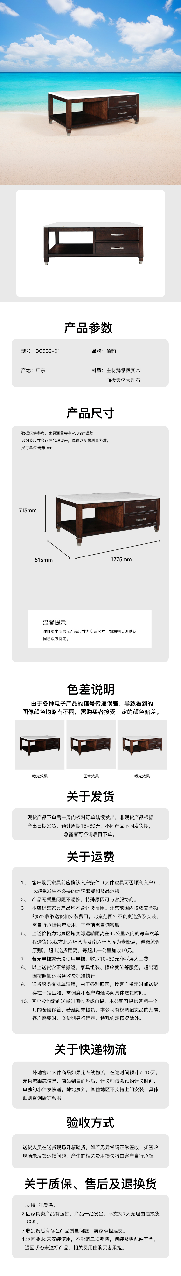 主材:*主材鹅掌楸实木 *MDF环保板(P2级美国出口标准) *环保夹板抽屉(P2级美国出口标准) *燕尾榫结构抽屉搭配三节钢珠滑轨 *抽拉板采用防火板防水隔热 *面板天然大理石 *锌合金镀镍拉手及脚套