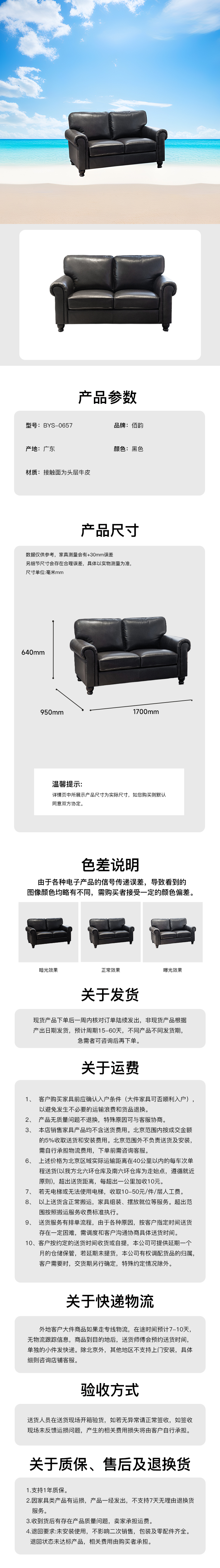 牛皮两位沙发接触面为牛皮 BYS-0657