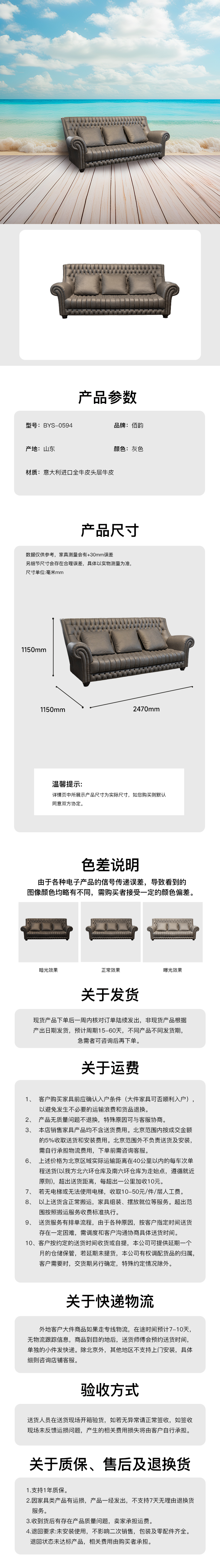 全皮三人位沙发意大利进口全牛皮头层牛皮 BYS-0594
