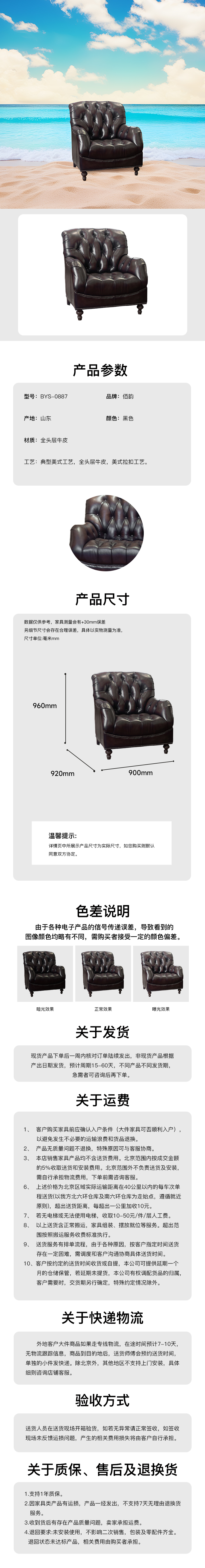全皮单人位沙发全头层牛皮 BYS-0887
