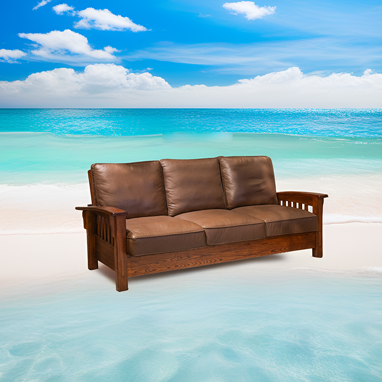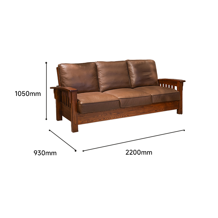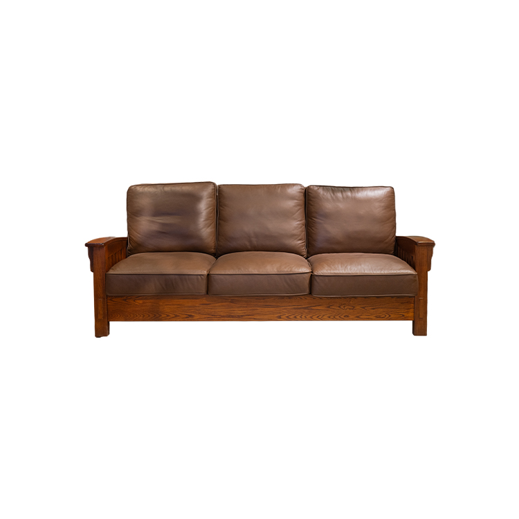 三人沙发白蜡木,头层牛皮 BYS-0601