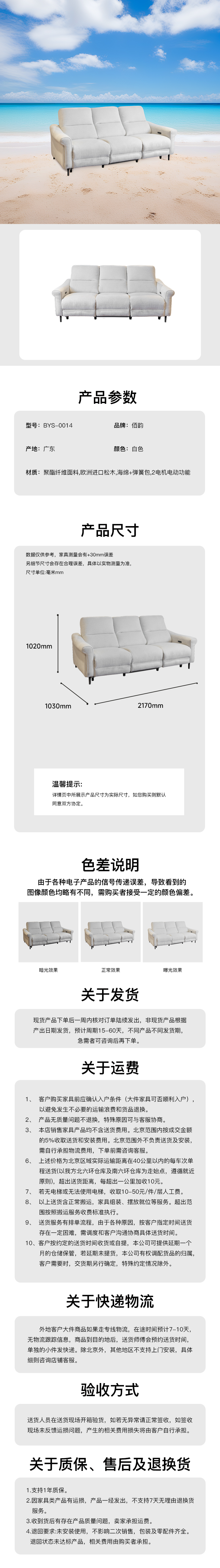 电动三人位沙发2电机电动 BYS-0014