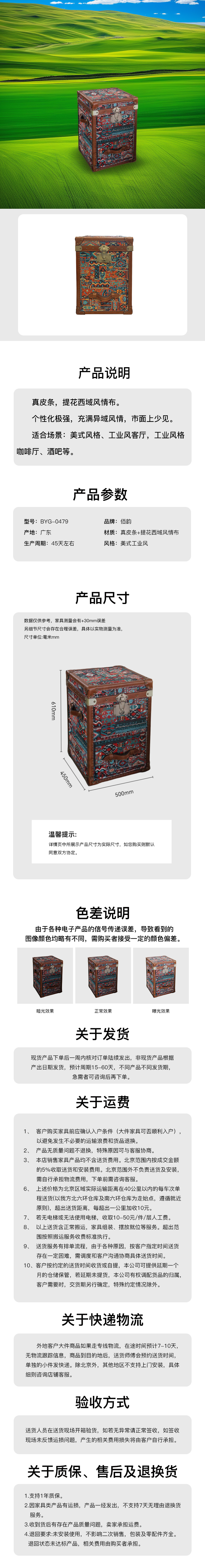 皮箱真皮条+提花西域风情布 BYG-0479