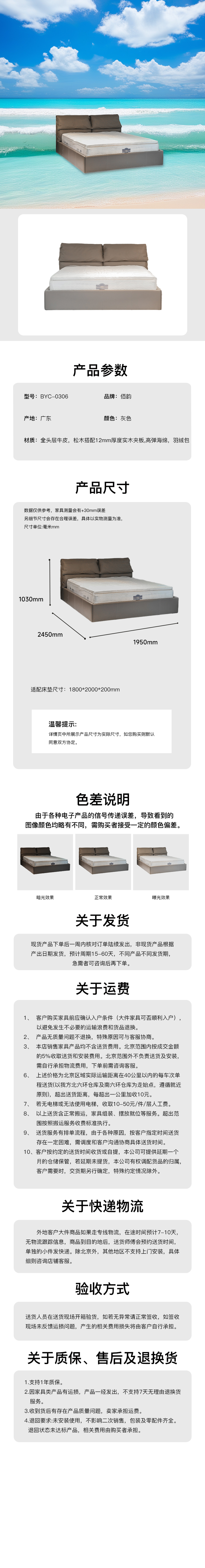 全皮床(1.8m)全头层牛皮 BYC-0306