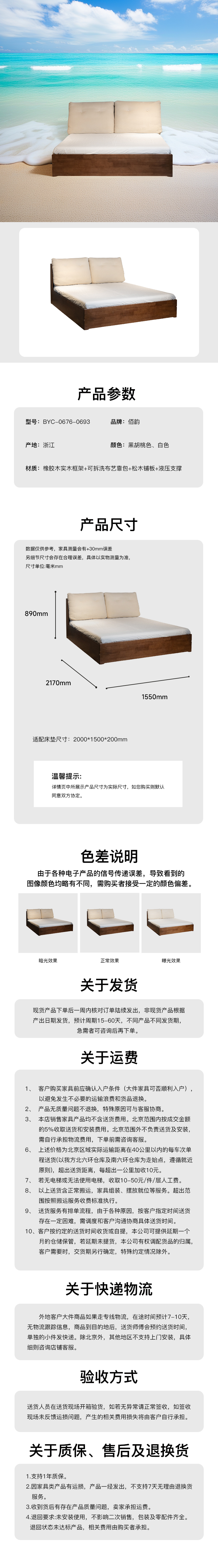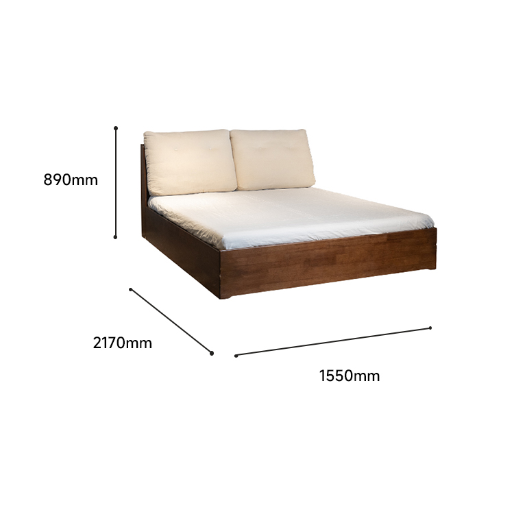 1.5m箱床-胡桃色(白靠包)橡胶木实木 BYC-0676-0693