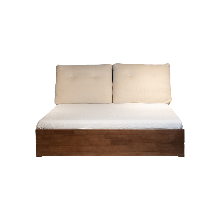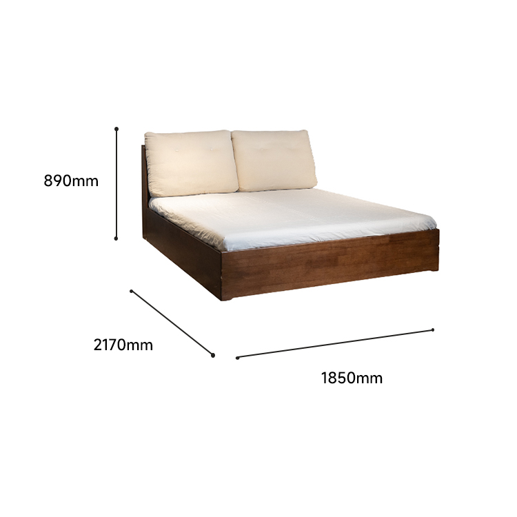 1.8m箱床-胡桃色(白靠包)橡胶木实木 BYC-0678-0697